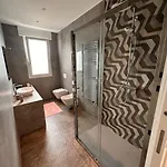 Der er et bidet, en brusekabine og separat toilet på badeværelset.
